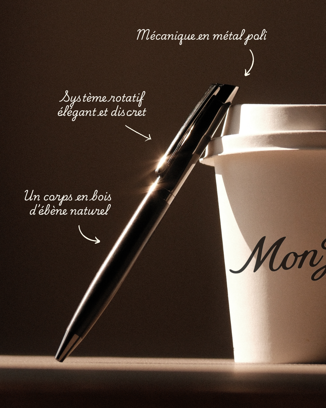Sa glisse est douce, sans à-coup. L'encre noire se dépose avec précision. Que ce soit pour signer, écrire ou réfléchir, ce stylo transforme l'écriture en expérience sensorielle.